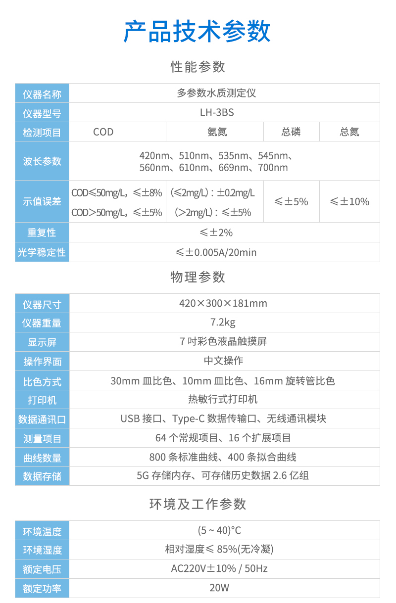 LH-3BS多參數(shù)水質(zhì)測定儀COD氨氮總磷總氮重金屬無機(jī)鹽